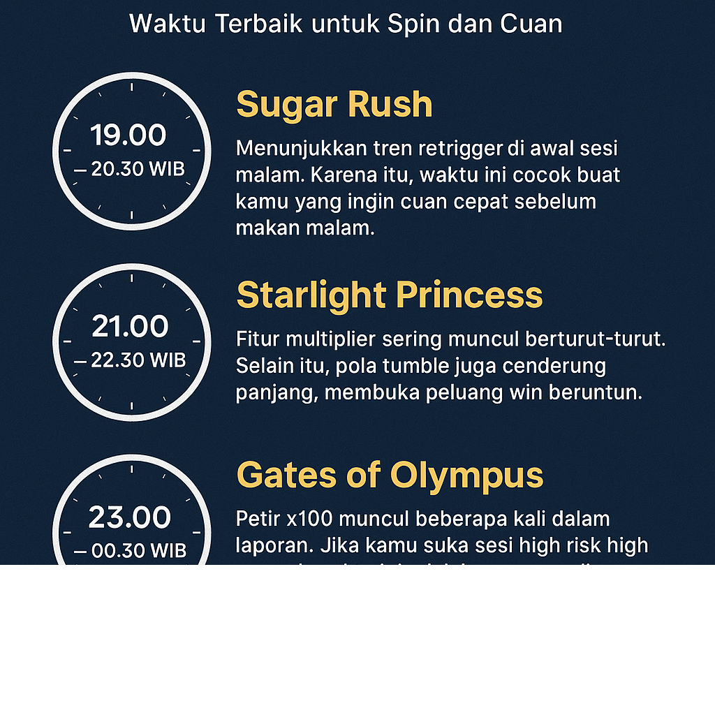 Berdasarkan data RTP Live dan pola server, berikut ini waktu-waktu terbaik buat spin malam ini — lengkap dengan rekomendasi game yang sedang gacor.
