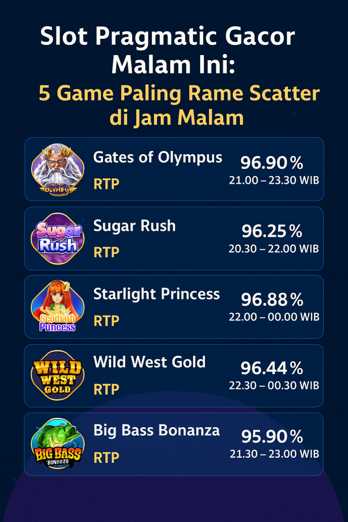 Slot Pragmatic Gacor Malam Ini: 5 Game Paling Rame Scatter di Jam Malam